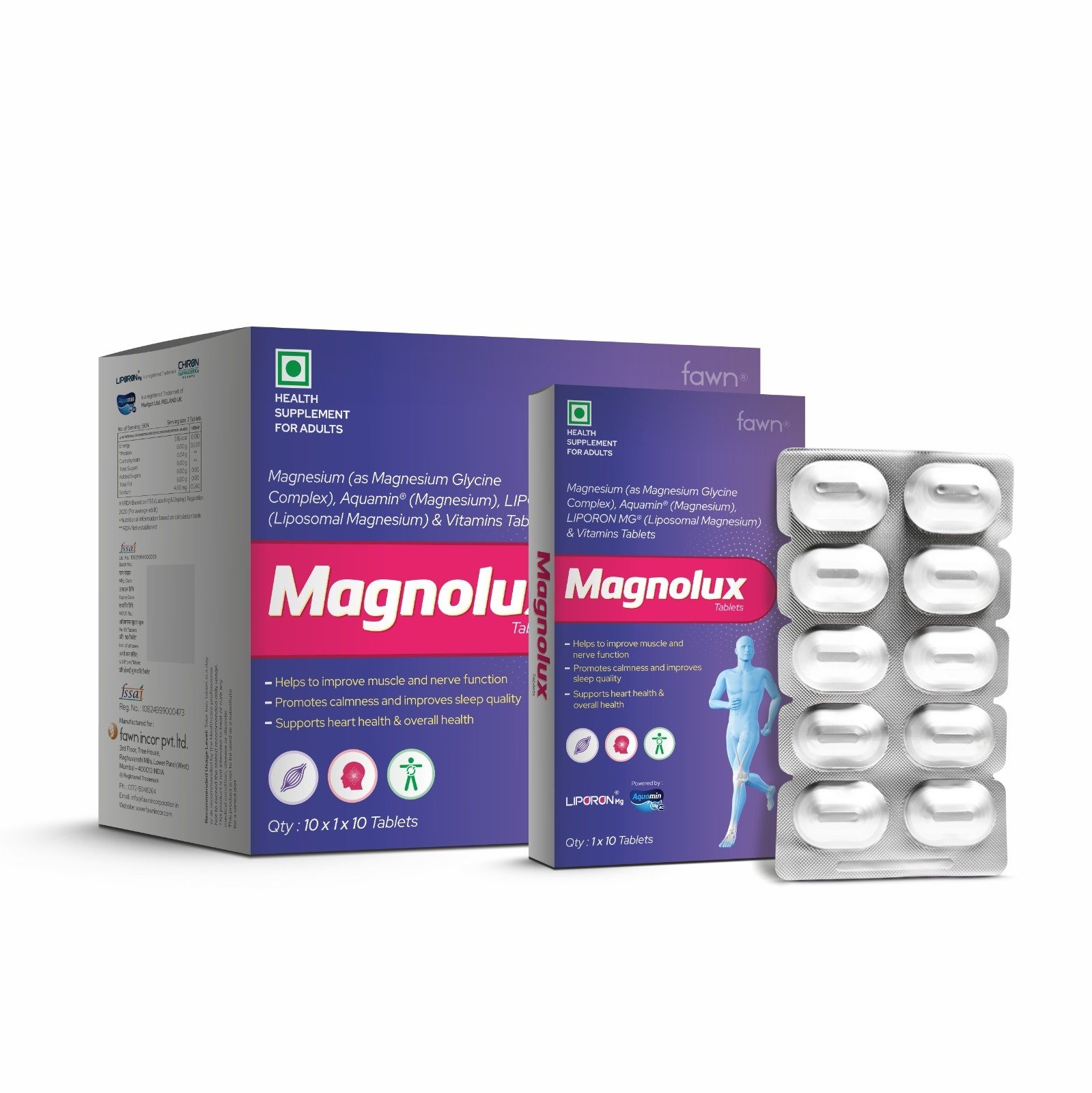 Magnesium (As Magnesium Glycine Complex) 120mg, Aquamin Magnesium 198mg, Liposomal Magnesium 122mg, Vitamin D, Vitamin B12 2.2mcg