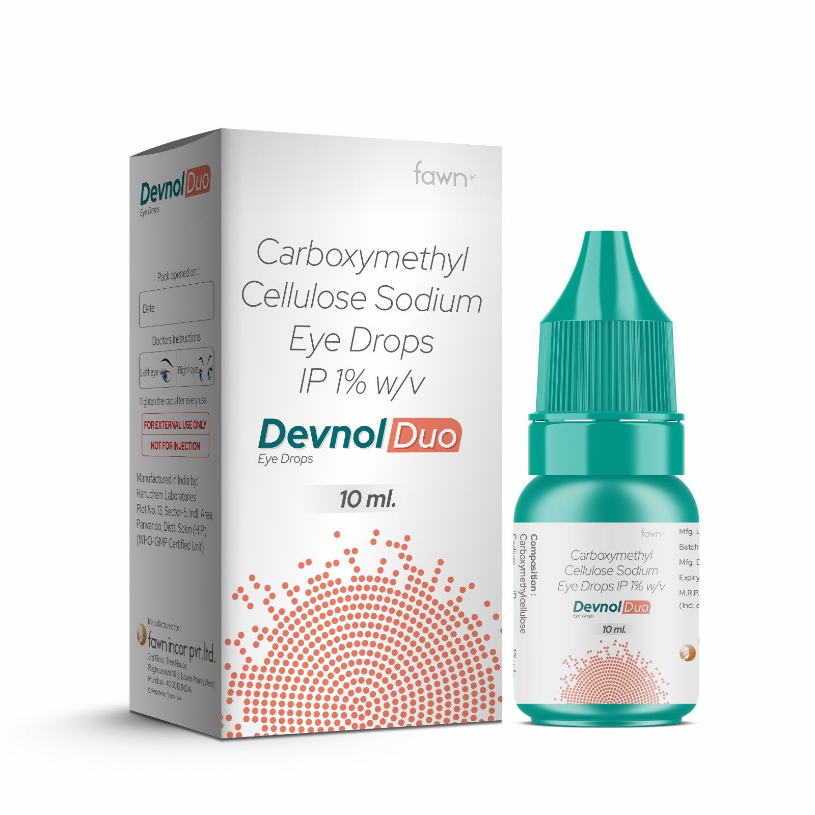 DEVNOL DUO Eye Drops: The composition of Sodium Carboxymethyl Cellulose 1%, Ophthalmic Solution 0.0075% belongs to the class of ‘ophthalmic lubricants’ that treat dry eyes and which leads to the deficiency of tears, causing damage to the ocular surface, where sodium carboxymethyl cellulose is a tear substitute and a lubricant that keeps the eyes moist and helps protect the eyes from infection. It also relieves foreign body sensations, such as burning and itching of the eyes. Stabilised Oxychloro complex is an antimicrobial preservative.