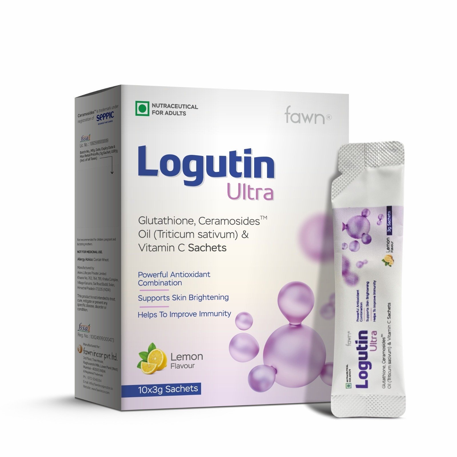 Glutathione 500mg, Ceramosides Oil (Triticum Sativum) 30mg & Vitamin C 40mg Sachet