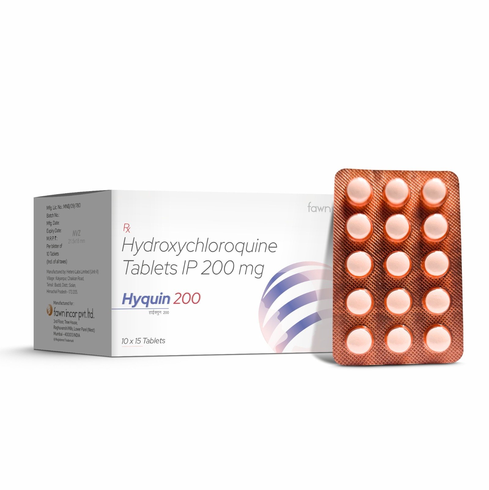 HYQUIN 200: Its composition is Hydroxychloroquine Sulphate I.P. 200 mg, which is a 4-aminoquinoline compound with antimalarial and immunomodulatory properties. It interferes with lysosomal activity and antigen processing in immune cells, which helps reduce inflammation and modulate the immune response in autoimmune diseases like RA and SLE. It is also effective for prophylaxis and treating malaria caused by Plasmodium vivax, P. ovale, and P. malariae.