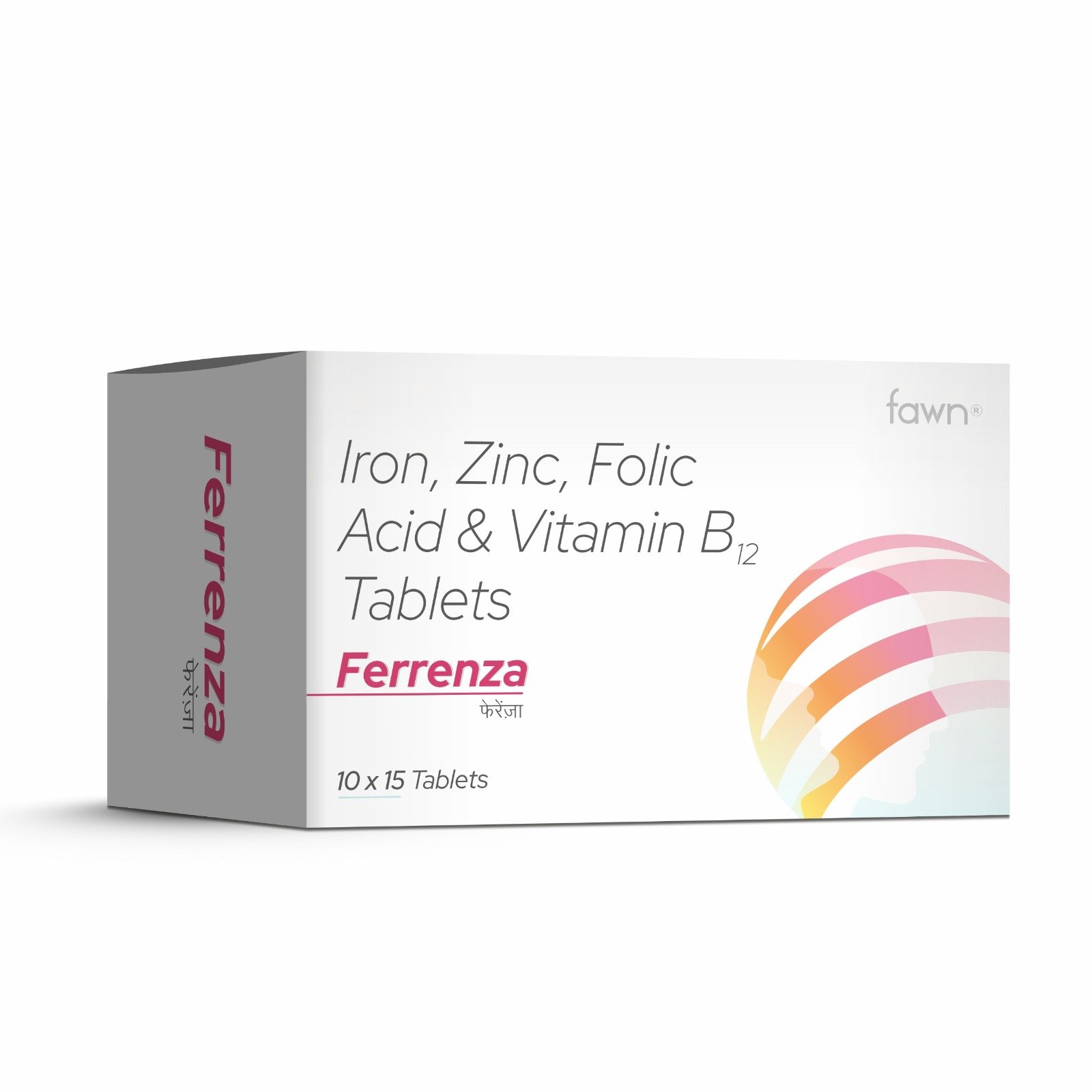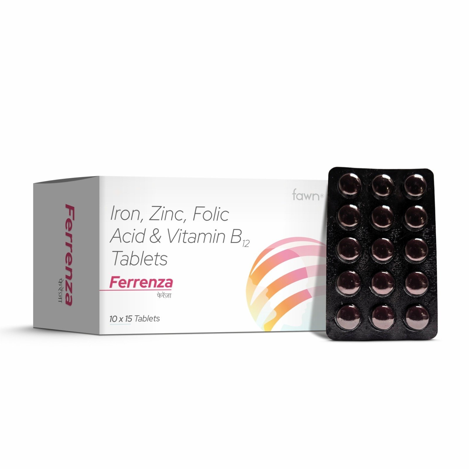 Each Film Coated contains :- Iron (As Amino acid Chelate ) 30mg+ Zinc (as Zinc picolinate) 10mg+Folic Acid 1.5mg+ Vitamin B12 15mcg