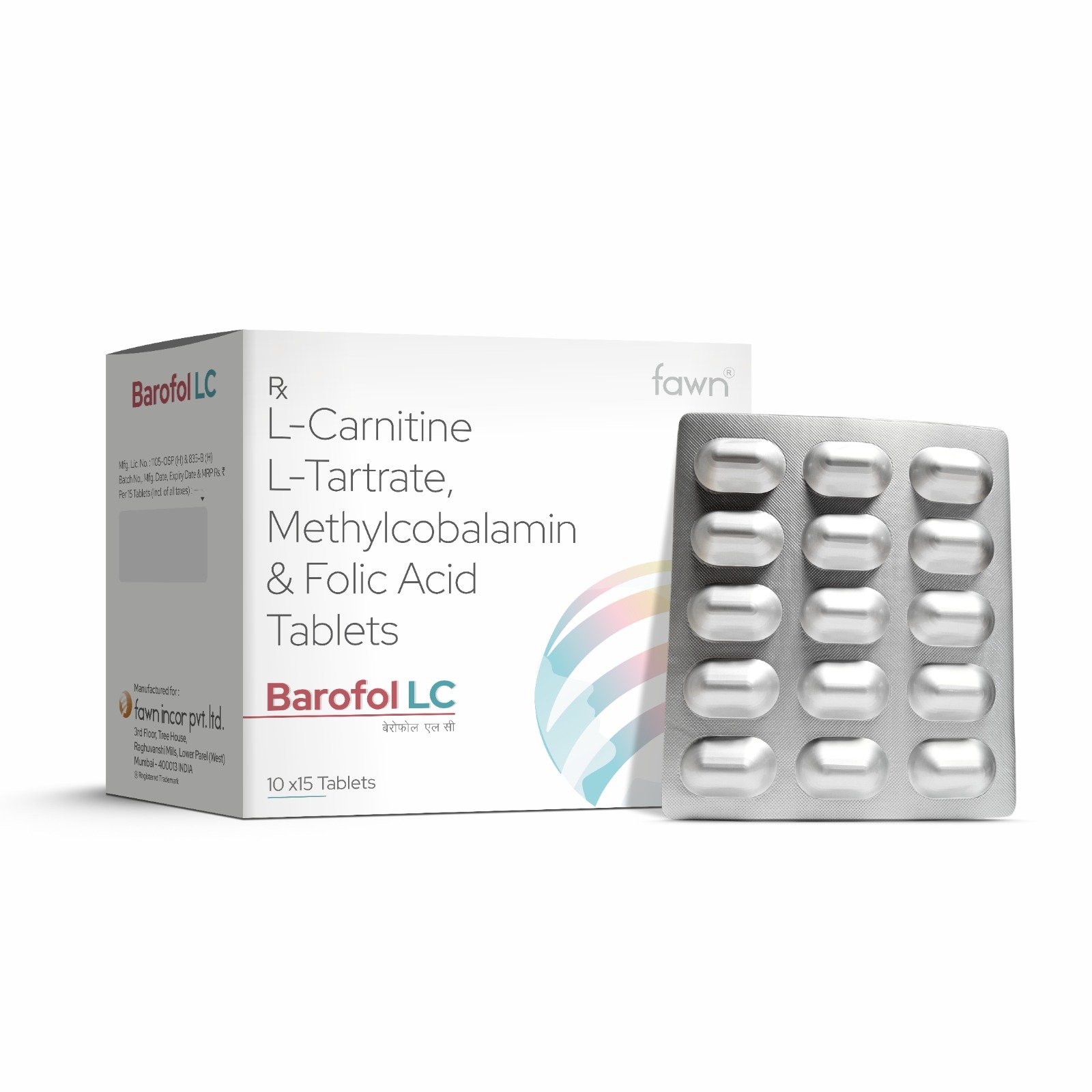 BAROFOL LC Tablets: The Triple composition of L-Carnitine-L-tartrate 500mg + Folic Acid 1.5mg + Methylcobalamin 1500mcg is formulated to enhance energy production, protect nerve integrity, and promote cardiovascular health. L-Carnitine L-Tartrate: Facilitates fatty acid transport into mitochondria for energy production, reduces oxidative stress, and supports muscle recovery.Folic Acid: Essential for DNA synthesis and repair, lowering homocysteine levels to promote cardiovascular health. Methylcobalamin: The bioactive form of Vitamin B12, critical for nerve regeneration, red blood cell production, and DNA synthesis.