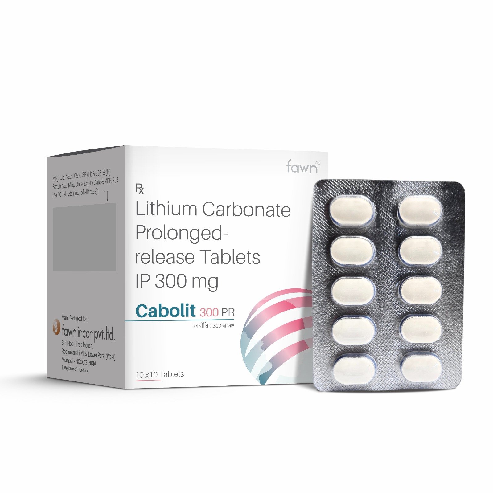 CABOLIT 300 PR Tablets: The composition of Lithium Carbonate 300mg Prolonged Release is a time-tested and clinically proven mood stabiliser used in the management of bipolar disorder, recurrent depression, and manic episodes. It modulates neurotransmitter activity in the brain, helping control mood swings, aggression, and hyperactivity. The prolonged-release (PR) formulation ensures consistent therapeutic levels, reducing fluctuations and side effects while stabilising long-term mood.