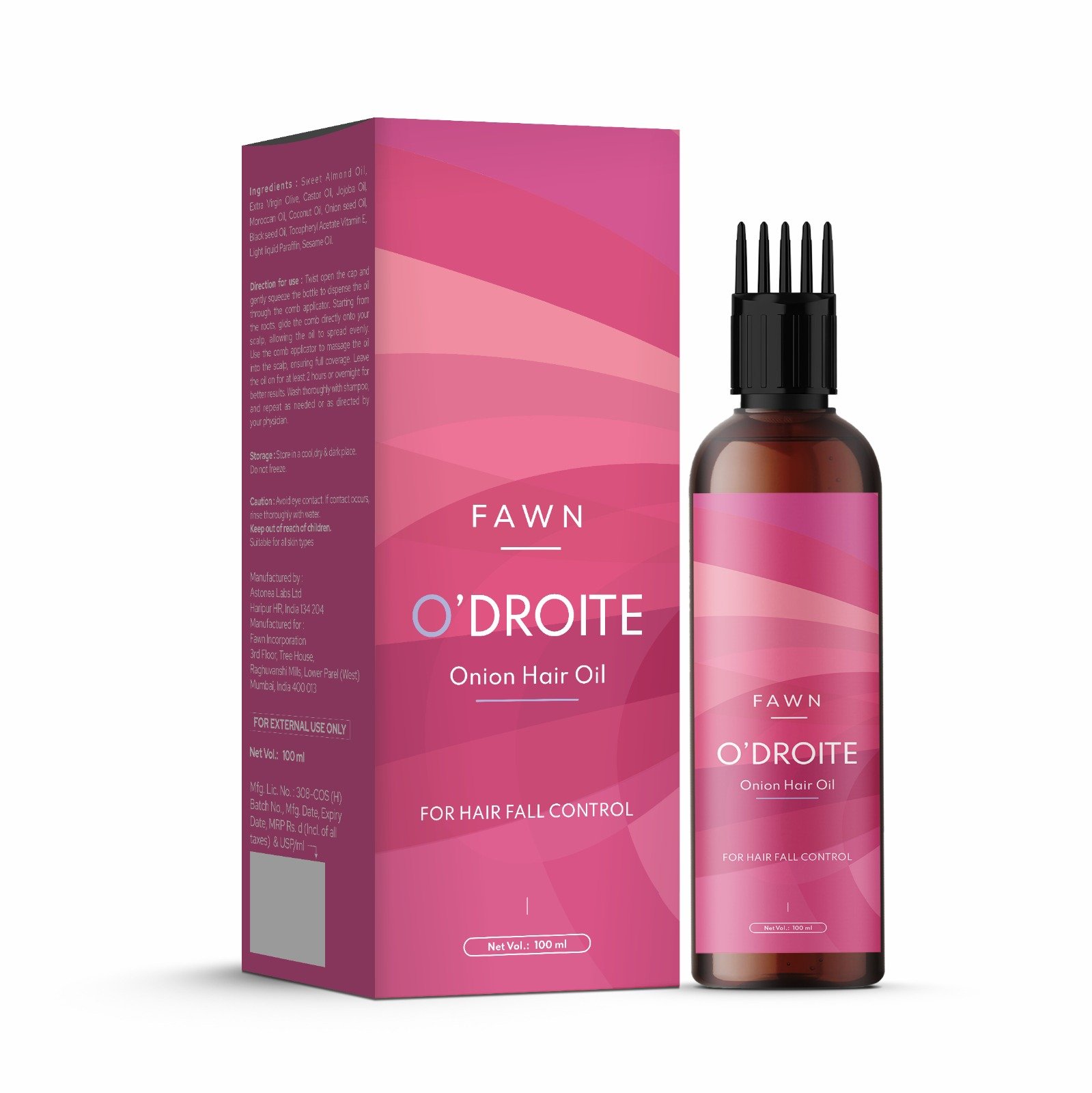 Sweet Almond Oil, Extra Virgin Olive Oil, Castor Oil, Jojoba Oil, Moroccan Oil, Coconut Oil, Onion seed Oil, Black Seed Oil, Tocopheryl Acetate Vitamine E, Light liquid Paraffin, Sesame Oil – 100 ML