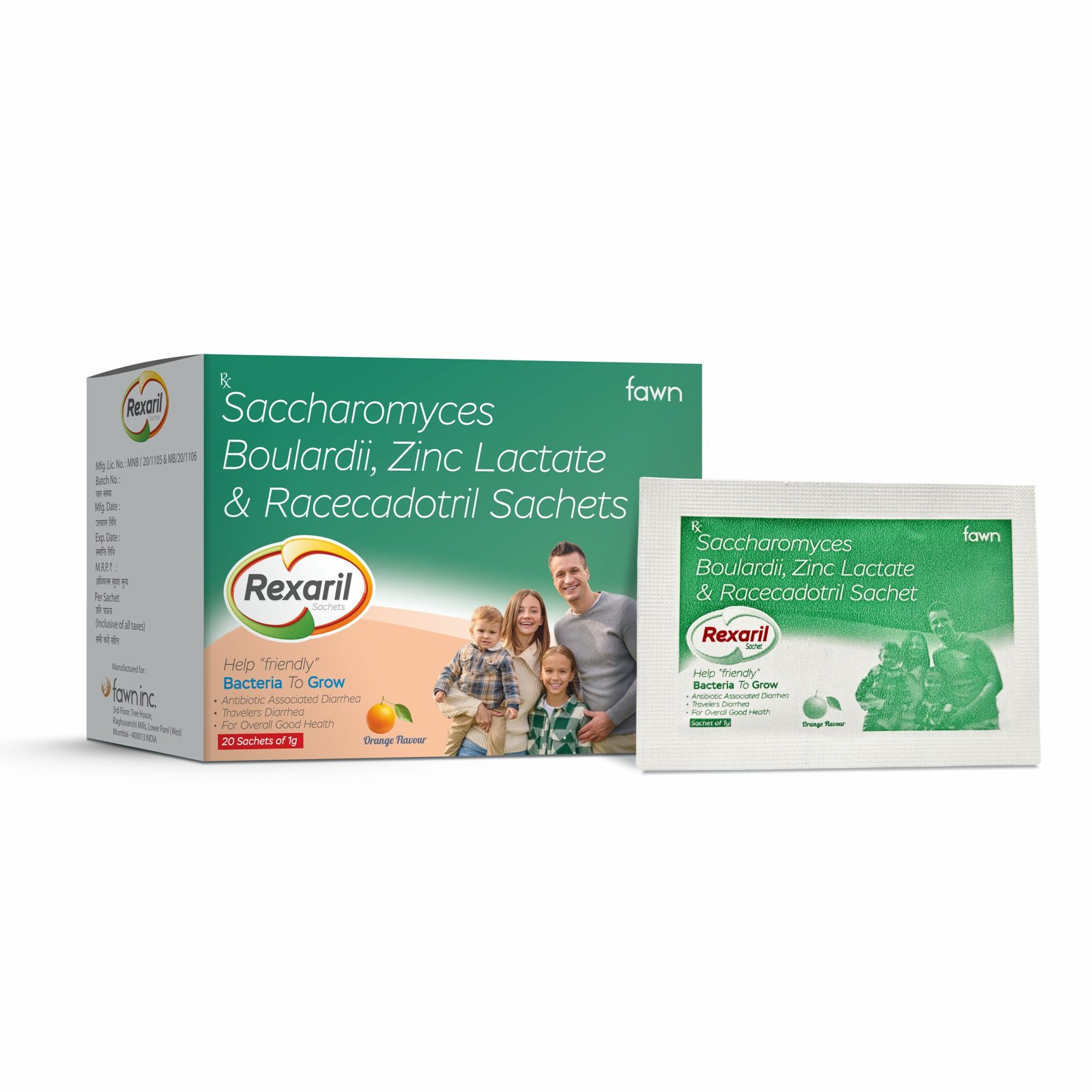 Each 1 G Sachet Contains: Saccharomyces Boulardii (Corresponding To 250 Mg Of Yeast) 282.5 Mg + Racecadotril 15 Mg +Zinc Lactate Eq. To Elemental Zinc 7.5 Mg (Drug)