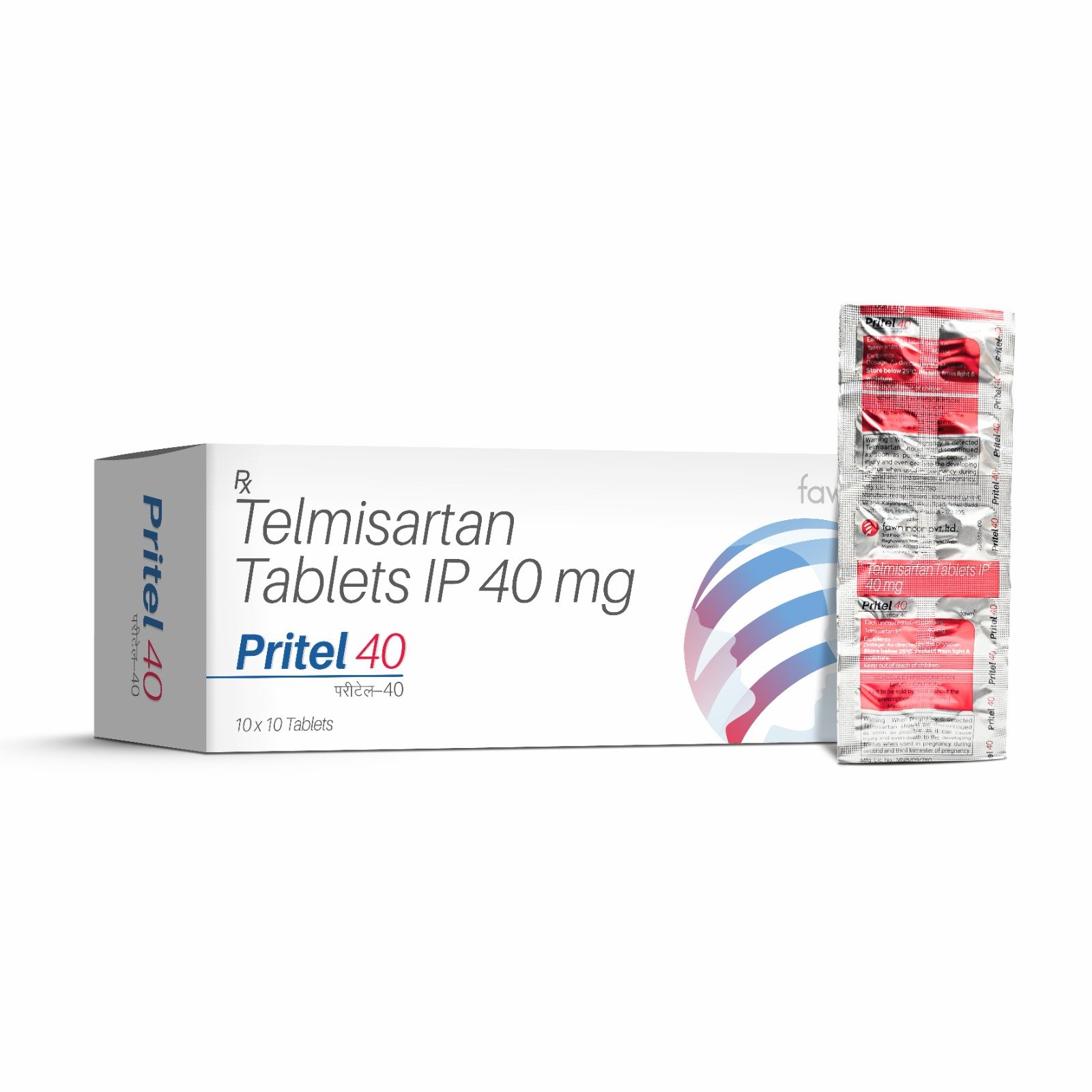 PRITEL 40 Tablets: The composition of Telmisartan Tablets I.P. 40 Mg is an angiotensin II receptor blocker (ARB) used to treat high blood pressure (hypertension) and to reduce the risk of cardiovascular events such as heart attack and stroke. It works by blocking he action of angiotensin II, a hormone that causes blood vessels to constrict, leading to lower blood pressure and improved blood flow.