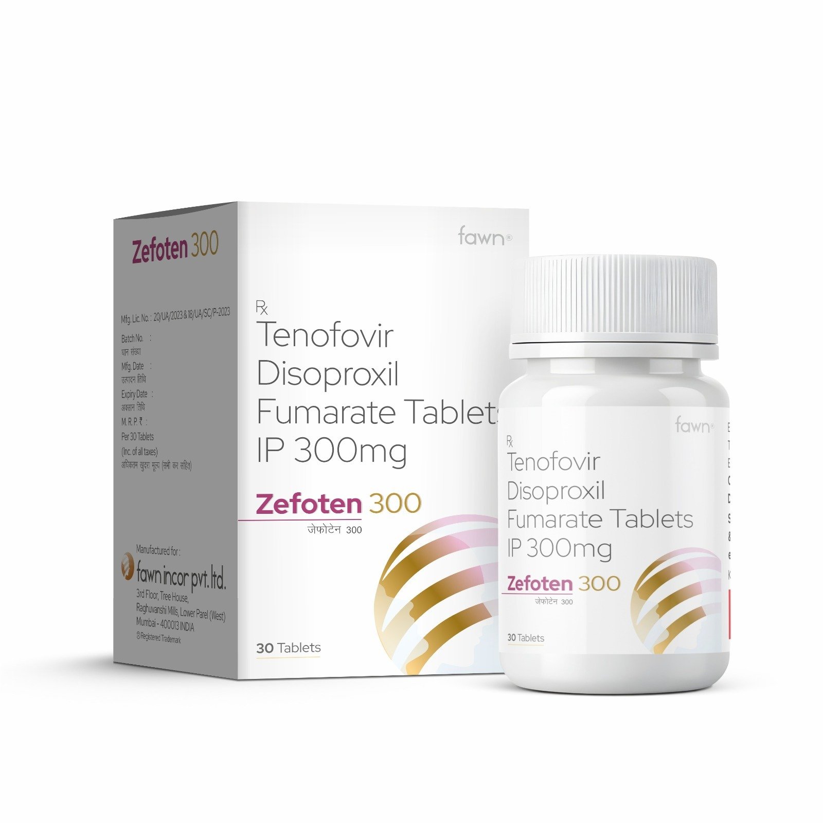 ZEFOTEN 300 Tablets: The Composition of Tenofovir Fumarate 300 mg is a nucleotide reverse transcriptase inhibitor (NtRTI) widely prescribed in the management of HIV-1 infection and chronic Hepatitis B virus (HBV) infection. It works by blocking viral replication, thereby lowering viral load, slowing disease progression, and supporting immune system recovery. As a proven first-line therapy, Tenofovir Disoproxil Fumarate offers reliable antiviral efficacy and long-term clinical benefits in both HIV and HBV patients.